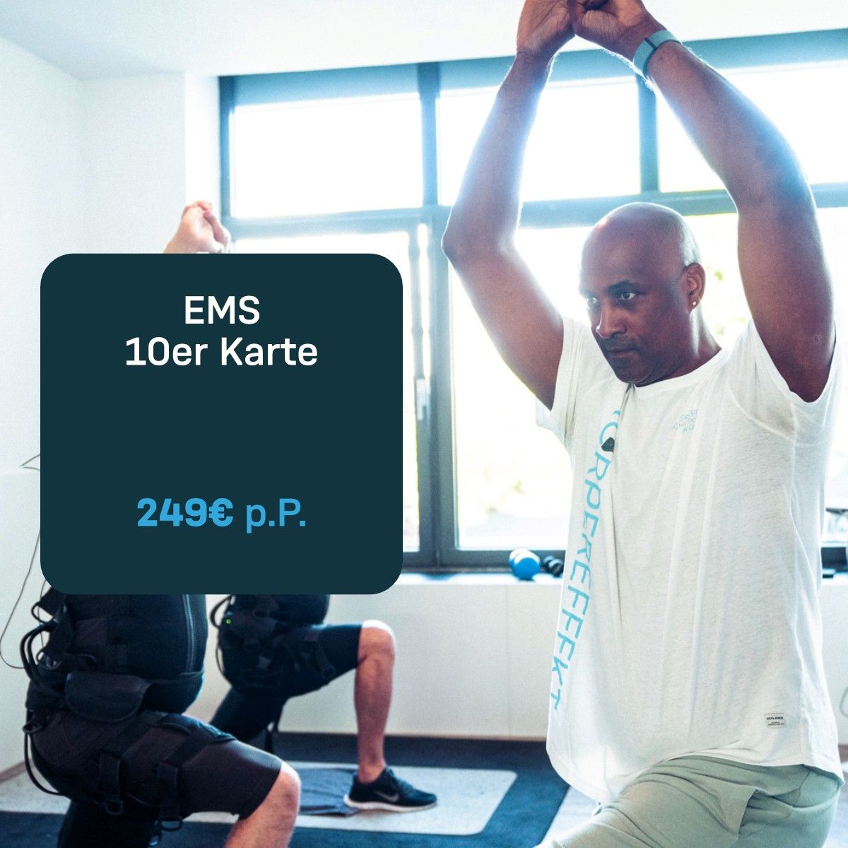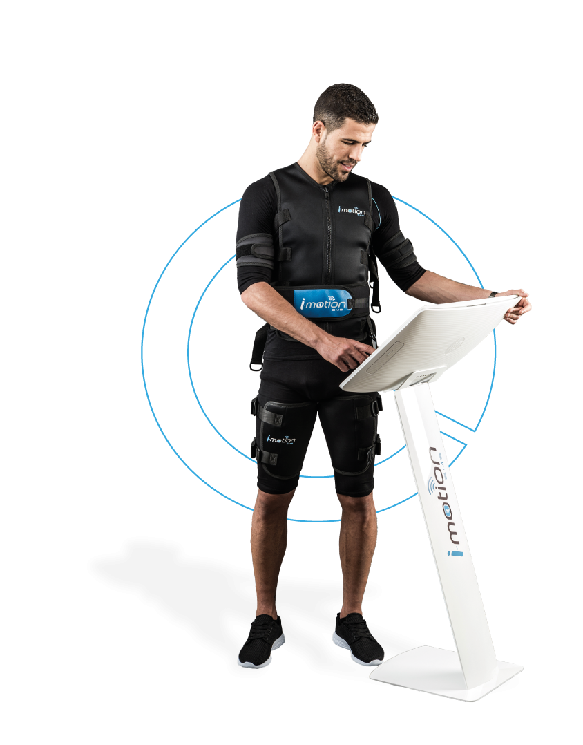 Beim EMS-Training trägst du eine EMS-Weste und weitere Elemente, die über Elektroden verfügen. Diese geben Impulse auf alle Hauptmuskelgruppen ab. Mithilfe von Strom wird der Impuls aktiviert und kontrahiert die Muskeln und wirkt somit wie ein körpereigener Booster.